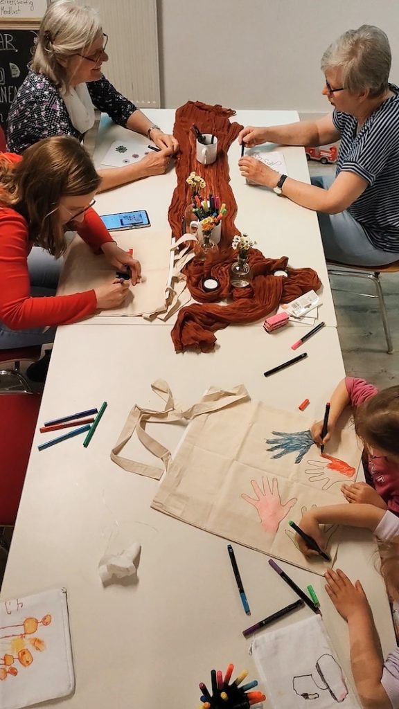 Danach gab’s wie auch schon beim letzten mal zwei Kreativ-Workshops. Einige bemalten Jutebeutel und kleine Taschen und andere machten Perlenarmbänder. Auch ein paar Kinder waren mit dabei. Was im Fokus stehen sollte: ganz simple Gemeinschaft. Und genau das durften wir auch erleben. Das gesamte Treffen war von einer herzlichen, liebevollen Art und ganz viel Humor geprägt. Beim Aufräumen packten alle mit an, sodass das dann ganz flott ging.