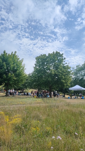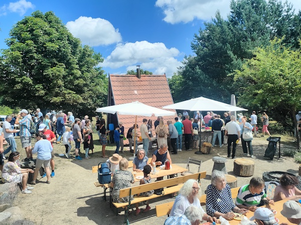 Am Sonntag fand der große Open Air Gottesdienst unter dem Thema Schutz, angelehnt an Nehemia statt. An sechs interaktiven Stationen konnten die Kinder erlernen, Gefühle richtig einzusortieren, andere wahrzunehmen, Schutzlose zu schützen, gemeinsam für das Gute einzustehen und vieles mehr. Für die Erwachsenen gab es auch Gesprächsgruppen zu den verschiedenen Aspekten. Das alles mündete in einem Grillfest mit einem guten, leckeren und bunten Buffet was scheinbar nie leer wurde.